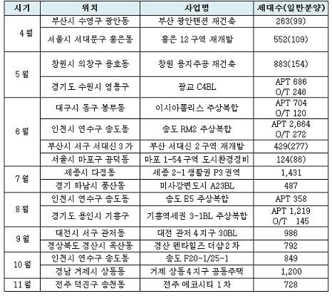 지방은 7984가구로 오는 5월 분양하는 창원 의장구 '용지주공 아파트' 일반분양 154세대를 포함한 883세대와 송도국제도시 물량이 6월, 8월, 10월에 각각 공급될 예정이다.