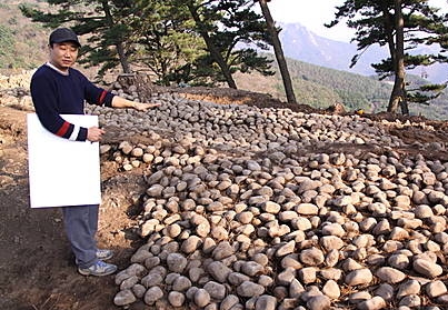 경남 거제 둔덕기성 유적지 발굴조사 현장에서 일정한 크기의 몽돌이 무더기로 발견돼 비상한 관심을 끌고 있다.거제시는 동아세아문화재연구원을 통해 둔덕기성 유적지 발굴조사를 벌이던 중 지름 10~20㎝ 크기의 몽돌 무더기를 발견했다고 4일 밝혔다.