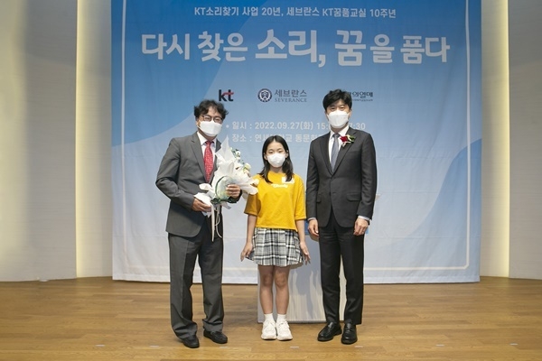 [파이낸셜데일리 이정수 기자] KT(대표이사 구현모)는 연세의료원(원장 윤동섭)과 27일 오후 서울 서대문구 연세대 동문회관에서 소리찾기 20년 및 KT 꿈품교실 10주년 기념식을 열어 그간의 성과를 돌아보는 자리를 가졌다.
