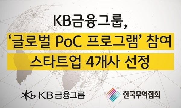 [파이낸셜데일리 유호상 기자] KB금융그룹(회장 양종희)은 13일 한국무역협회(회장 구자열)와 함께 해외 진출을 희망하는 국내 스타트업을 지원하기 위해 ‘글로벌 PoC(Proof of Concept, 기술실증) 프로그램’에 참여할 국내 스타트업 4개 社를 최종 선정하였다.