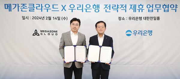[파이낸셜데일리 유호상 기자] 우리은행(은행장 조병규)은 지난 14일 클라우드 관리 전문기업인 메가존클라우드(대표이사 이주완)와 ‘BaaS※ 구체화 및 공동 협력을 위한 전략적 업무협약’을 체결했다고 15일 밝혔다.