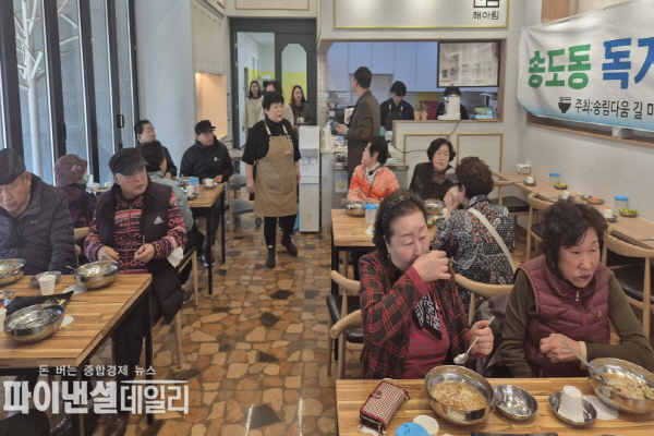 [파이낸셜데일리 박미화 기자] 포항시는 지난 4일 송림다움길 마을관리사회적협동조합이 송도동 지역 어르신들을 초청해 따뜻한 칼국수와 김밥을 대접하는 이웃 나눔 행사를 진행했다고 밝혔다.