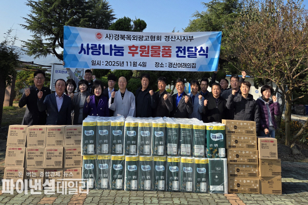 [파이낸셜데일리 박미화 기자] 사단법인 경북옥외광고협회 경산시지부(지부장 원윤희)는 4일 경산여래의 집과 경산시노인복지회관을 방문하여 경산시의회 의원들이 참석한 가운데 백미 10kg 40포와 휴지, 샴푸 등 시가 250만 원 상당을 각각 2개소에 전달식을 가졌다고 밝혔다.