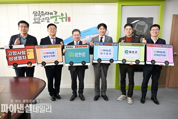 [파이낸셜데일리 박미화 기자] 군위군은 지난 9일, 군위군청 제1회의실에서 농협 군위군지부, 달성군지부, 농협중앙회 대구본부와 함께하는 「고향사랑 지역상생 협력 기탁식」을 개최했다고 밝혔다.