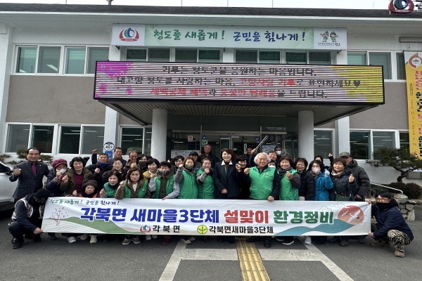 [파이낸셜데일리 박미화 기자] 청도군(군수 김하수) 각북면은 10일 면사무소 회의실에서 각북면 새마을3단체 38명을 대상으로 설맞이 환경정비 회의를 개최했다.