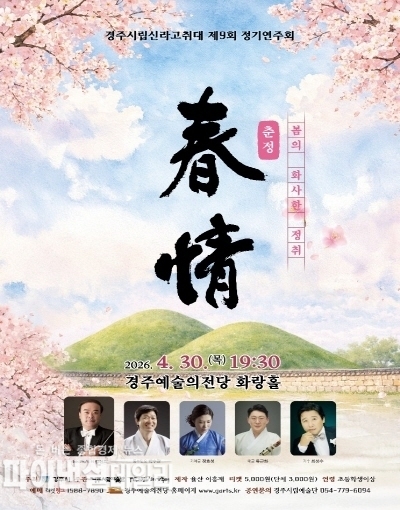 최혁준 경주시장 권한대행은 “신라의 전통 선율과 현대적 감각이 어우러진 이번 정기연주회가 시민과 관광객 모두에게 특별한 문화 향유의 시간이 되길 바란다”고 말했다.