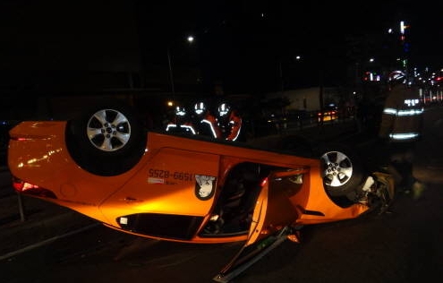 오전 2시49분께 강북구 미아동 롯데백화점 앞 도로에서는 삼양입구 사거리에서 미아사거리 방향으로 직진하던 택시가 버스정류장 가드레일을 들이받고 전복되는 사고가 발생했다.