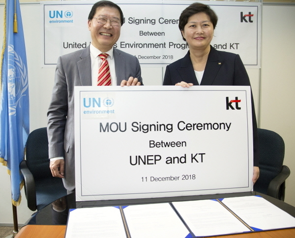 또 KT는 한국에 구축된 미세먼지 측정 인프라와 플랫폼을 전세계 미세먼지 고농도 지역 데이터를 활용해 UNEP 환경 데이터 지식 플랫폼인 'Environment Live'에 컨설팅도 지원한다.