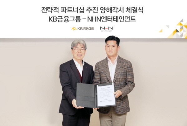 [파이낸셜데일리=이정수 기자] NHN엔터테인먼트는 KB금융그룹과 디지털 부문의 경쟁력 강화를 위한 '전략적 파트너십 추진 업무협약'을 체결했다고 20일 밝혔다.