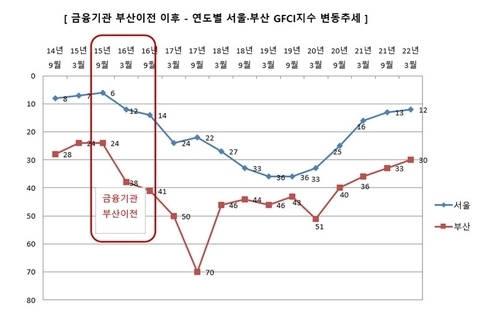 서울시는 "금융기관 지방 이전이 본격화된 2015년을 기점으로 2019년 36위까지 하락했으나 최근 2년간 상승세를 보인다"며 "오세훈 시장 취임 이후 서울을 세계 5대 금융도시로 만들겠다는 목표로 마스터플랜을 수립, 추진하면서 국제금융허브로서의 가능성을 보여줬기 때문"으로 분석했다.