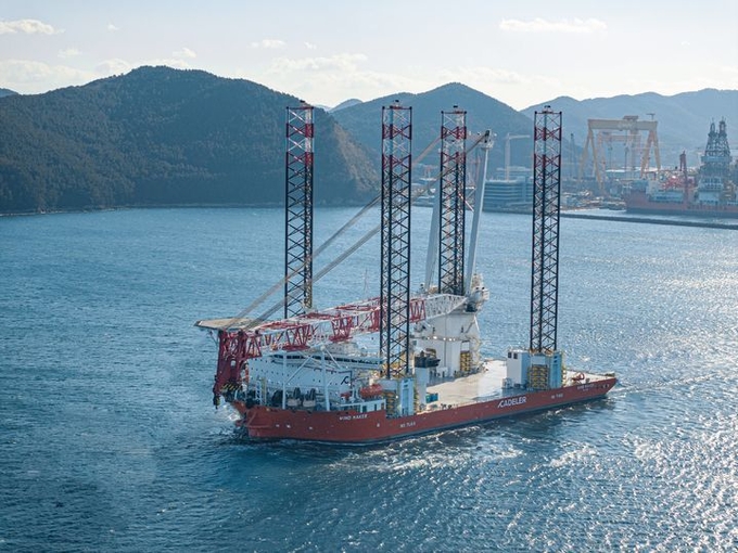 5일 업계에 따르면 한화오션은 지난 1월 WTIV 1척에 이어 이달에도 1척을 해상풍력 전문기업 카델라에 인도하며 올해 예정한 2척에 대한 인도를 마쳤다. 2척 모두 예정보다 한 달 앞서 인도하며 WTIV 분야 경쟁력을 입증했다는 설명이다.
