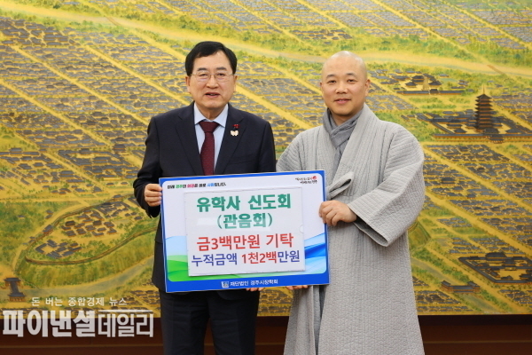 [파이낸셜데일리 박미화 기자] 경주시 건천읍 신평리 소재 유학사와 신도회(관음회)에서 6일 미래 경주지역을 이끌어갈 인재육성과 이 지역의 교육발전을 위해 장학금 3백만원을 (재)경주시장학회에 기탁했다.
