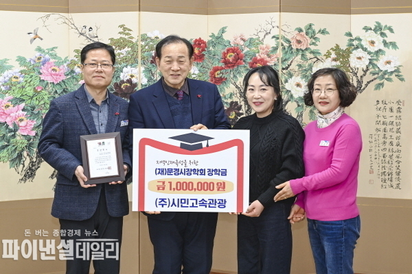[파이낸셜데일리 박미화 기자] (재)문경시장학회는 지난 28일 지역인재 육성을 위한 장학금으로, (주)시민고속관광에서 100만 원을 기탁받았다고 밝혔다.