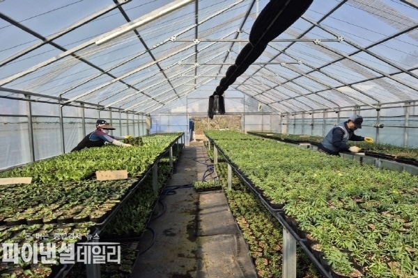 시는 지난 1월 팬지, 금잔화, 데이지, 페츄니아, 리나리아, 오스테우스펄멈, 실비아, 가자니아 등 8종의 봄꽃 모종을 구입해 포트에 옮겨 심은 뒤, 조성해 둔 온실 2동에서 약 두 달간 생육 관리에 집중하고 있다.