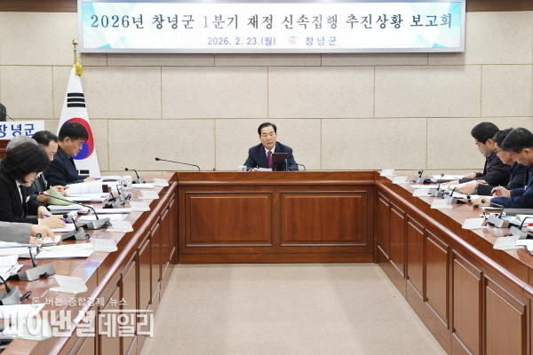 [파이낸셜데일리 박미화 기자] 창녕군은 23일 위축된 민생경제에 활력을 불어넣고 지역 상권의 선순환 구조를 확립하기 위한 ‘2026년 1분기 재정 신속집행 보고회’를 개최했다고 밝혔다.