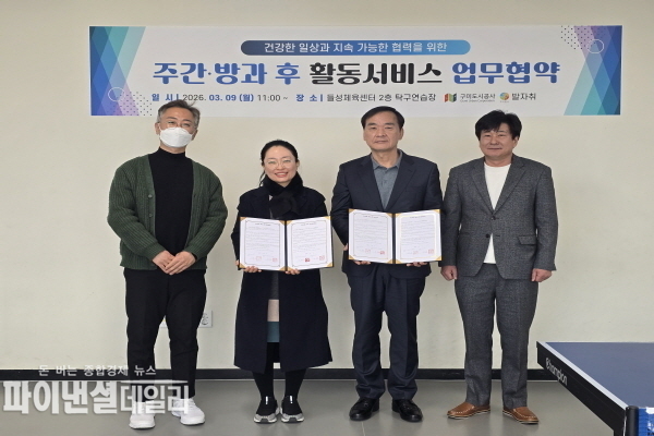 [파이낸셜데일리 박미화 기자] 구미도시공사 들성생활체육센터는 지난 9일, 지역 내 사회적 약자의 복지증진과 건강한 성장을 지원하기 위해 ‘구미 발자취 주간활동센터’와 업무협약을 체결했다고 밝혔다.
