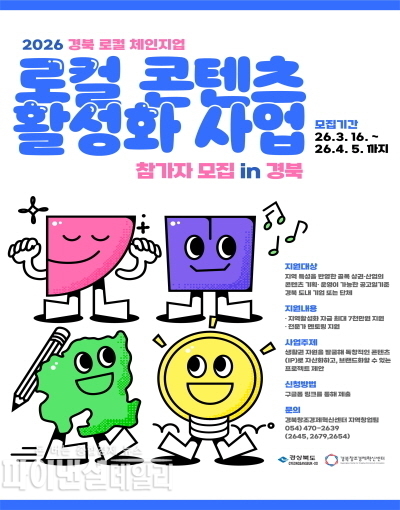 [파이낸셜데일리 박미화 기자] 경상북도는 지난 16일부터 오는 4월 5일까지 “경북 로컬 체인지업”사업의 일환으로 ‘생활권 단위 로컬 콘텐츠 활성화 사업’ 참여 단체를 모집한다고 밝혔다.