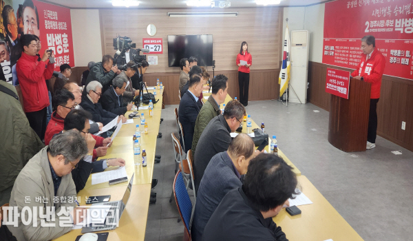 [파이낸셜데일리 박미화 기자] 박병훈 경주시장 예비후보가 26일 오전 후보자 사무실에서 기자회견을 열고 “이번 선거는 경주의 미래를 바꾸는 결정적인 분기점이 될 것”이라며 “공정한 경쟁과 품격 있는 선거를 통해 시민이 체감 할 수 있는 변화를 반드시 만들겠다”고 밝혔다.