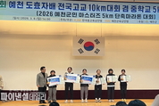 [파이낸셜데일리 박미화 기자] 제12회 예천 도효자배 전국 고교 10km 대회 겸 중학교 5km 대회가 지난 3월 8일 경상북도 예천군 일원에서 개최되었다고 밝혓다. 이번 대회는 전국 중·고등학교 육상 선수들이 참가해 기량을 겨루는 전국 규모의 대회로, 공인 코스에서 고등학교부 10km와 중학교부 5km 경기가 진행되었다. 경안여자중학교(교장 김호영) 육상부 소속 송재연 학생은 중학교부 5km 경기에서 17분 39초의 기록으로 개인전 2위를 차지하며 뛰어난 기량을 선보였다. 특히, 이번 대회는 2026년 시즌 첫 전국 대회로, 값진 입상을 통해 경안여중 육상부의 힘찬 출발을 알리는 계기가 되었다. 송재연 학생은 “출발 전에는 긴장도 되었지만, 평소 훈련했던 내용을 떠올리며 경기에 집중하려고 노력했다. 좋은 결과를 얻게 되어 기쁘고, 앞으로도 더 열심히 훈련해 좋은 모습을 보여 드리고 싶다.”고 소감을 밝혔다. 김호영 교장은 “2026년 첫 전국 대회에서 우리 학교 학생이 좋은 성과를 거두어 매우 기쁘다. 학생의 꾸준한 노력과 열정이 좋은 결과로 이어졌다고 생각한다. 앞으로도 학생들이 자신의 꿈을 향해 성장할 수 있도록 학교 차원에서도 지속적인 지원을 아끼지