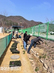 [파이낸셜데일리 박미화 기자] 성주군 금수강산면은 지난 3월 28일, 파크골프장 진입로와 시설 외곽 경계를 따라 비어있던 유휴지에 꽃잔디를 집중 식재하며 화사한 방문객 맞이에 나섰다. 이번 꽃길 조성은 금수강산면 파크골프회 회원들의 자발적인 봉사로 이루어져 그 의미를 더했다. 회원들의 손길로 재탄생한 시설 입구는 첫인상을 밝게 개선함은 물론, 지역 사회가 함께 가꾸는 여가 공간이라는 공동체적 상징성까지 갖추게 되었다. 특히, 지표면을 촘촘하게 덮으며 피어나는 꽃잔디의 특성을 살려, 입구부터 시설 경계까지 이어지는 ‘분홍빛 꽃물결’이 장관을 이룰 것으로 기대된다. 금수강산면 관계자는 “시설의 얼굴과도 같은 입구 공간을 꽃잔디로 채워 이용객들에게 작은 기쁨을 드리고자 했다”며 “앞으로도 세심한 조경 관리를 통해 누구나 다시 찾고 싶은 아름다운 파크골프장을 만들어가겠다”고 밝혔다.