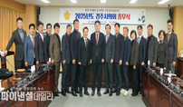 [파이낸셜데일리 박미화 기자] 경주시의회(의장 이동협)는 12월 31일 소회의실에서 종무식을 열고 2025년 일정을 마무리했다고 밝혔다. 경주시의회 의원과 의회사무국 직원 일동이 참석한 이번 종무식은 ▲승진자에 대한 임명장 전달, ▲의정활동 및 의회 발전에 기여한 공로가 큰 의원과 직원에 대한 표창, ▲제9대 경주시의회의 2025년 의정활동을 담은 홍보영상 시청 등의 내용으로 진행됐다. 이동협 경주시의회 의장은 송년사를 통해 “2025년은 ‘APEC 정상회의 성공개최’를 향한 의회의 도전과 헌신이 집약된, 그리고 현장에서 시민의 목소리를 듣고 제도와 정책으로 풀어내고자 했던 진정성이 담긴 한 해였다”고 평했다. 이어 “전문적인 의정활동을 펼쳐온 동료 의원분들과 헌신적으로 업무를 지원한 직원 여러분의 노고에 감사드리며, 2026년에도 경주의 발전과 시민 행복을 위해 힘을 모아달라”고 당부했다.