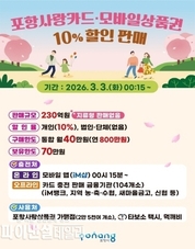 [파이낸셜데일리 박미화 기자] 포항시가 지역 경기 회복과 민생경제 안정을 위해 내달 3일부터 카드형·모바일 포항사랑상품권(포항사랑카드) 230억 원을 10% 할인된 금액으로 판매한다고 빍혔다. 시는 이달까지 포항사랑상품권 830억 원 발행한 데 이어, 이번 할인 판매분 230억 원 추가 발행으로 올해 연초에만 총 1,060억 원 규모의 포항사랑상품권을 유통한다. 이를 통해 지역 상권 소비를 촉진하고 민생경제 회복을 이어갈 계획이다. 이번 할인 판매는 2월과 같은 10% 할인율이 적용되며, 개인 구매 한도는 월 40만 원, 보유 한도는 70만 원이다. 시민들의 가계 부담을 덜고 소상공인 매출 증대에도 실질적인 도움이 될 것으로 기대된다. 포항사랑카드 충전은 3월 3일 0시 15분부터 ‘iM샵 앱’ 또는 지역 내 104개 판매 대행 금융기관 영업점을 통해 가능하다. 카드 판매 대행 금융기관 현황은 포항사랑상품권 홈페이지에서 확인할 수 있으며, 시는 시민 편의를 위해 판매대행점을 지속 확대해 나갈 계획이다. 포항사랑카드는 실물 카드 결제는 물론 ▲삼성페이 ▲네이버페이 QR ▲모바일 앱 ‘iM샵’ QR 등 다양한 결제 방식을 지원하며 지역 내 2만 5,275개소 가