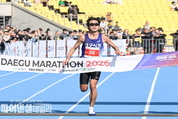 [파이낸셜데일리 박미화 기자] 지난 22일(일) 대구스타디움에서 열린 ‘2026 대구마라톤’이 25회째를 맞아 코스를 재정비하고 운영 완성도를 높인 가운데, 여자부 대회 신기록과 남자부 대회 2연패 기록이 동시에 탄생했다고 밝혔다. 2026대구마라톤의 우승자이자 대회 2연패의 주인공은 남자부 작년 대회 우승자 게브리엘 제럴드 게이(탄자니아) 선수다. 게이 선수는 2시간 8분 11초의 기록으로 2위보다 1초 앞선 손에 땀을 쥐는 경쟁 속에 가장 먼저 결승선을 끊으며 남자부 최초 2연패를 달성했다. 여자부에서는 릴리안 카사이트 렌제룩(케냐) 선수가 2시간 19분 35초의 기록으로 여자 대회 정상에 올랐다. 하프마라톤 세계랭킹 3위인 렌제룩 선수는 첫 풀코스 출전에서 기존 대회 기록을 1분 30초가량 앞당기며 대회 신기록을 세웠다. 국내 선수들도 한국마라톤의 저력을 뽐냈다. 남자부에서는 이동진(대구광역시청 소속) 선수가 2시간 20분 43초의 기록으로 국내 1위를 기록했으며, 여자부에서는 최정윤(충남도청) 선수가 2시간 32분 35초의 기록으로 국내 우승을 차지했다. DJ 응원카와 24개 팀, 700여 명의 시민 응원단을 비롯한 대구 시민의 뜨거운 응원은 선수들에