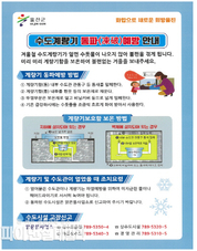 [파이낸셜데일리 박미화 기자] 울진군 맑은물사업소는 본격적인 동절기 한파에 대비해 수도계량기 및 수도관 동파로 인한 주민 불편을 최소화하고자 대대적인 예방 홍보와 긴급 복구 대책 추진에 나섰다. 군은 오는 3월 15일까지를‘겨울철 수도시설 동파방지 대책 기간’으로 정하고, 상수도 분야 긴급 대책반을 운영한다. 대책반은 동파 사고 발생 시 신속한 복구와 비상 급수를 지원해 주민들의 생활용수 공급에 차질이 없도록 대응할 계획이다. 특히, 겨울철 동파 사고를 예방하기 위해 주민들에게 다음과 같은 행동 요령을 적극 안내하고 있다. 먼저 계량기함 밀폐 및 보온관리가 중요하다. 계량기함 내부의 수도관 관통구 등 틈새를 밀폐하고, 헌 옷이나 에어캡 등 젖지 않은 보온재로 내부를 가득 채워야 한다. 외부 뚜껑 부분은 비닐 등으로 덮어 찬 공기 유입을 차단하는 것이 중요하다. 또한, 혹한이 예상되거나 장기간 외출 시에는 수도꼭지를 조금 열어 수돗물을 가늘게 흐르하는 소량 퇴수를 통해 관로 내 결빙을 효과적으로 예방할 수 있다. 아울러 계량기나 수도관이 얼었을 경우에는 50도 이상의 뜨거운 물을 바로 붓지 말고, 헤어드라이어의 약한 바람을 사용하거나 미지근한 물부터 시작해 점