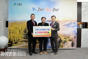 [파이낸셜데일리 박미화 기자] 지난 9일(금) ㈜가온누리ENG(대표 최순연)·대보ENG(대표 권주윤)에서 고령군청을 방문하여 지역의 교육 발전과 인재 양성을 위해 사용해 달라며 교육발전기금 각 300만원을 기탁했다. 이날 기탁식에 참석한 ㈜가온누리ENG 대표 최순연님과 대보ENG 대표 권주윤님 은 “지역의 우수한 인재를 키우는 밑거름이 되길 바라는 마음에서 교육발전기금을 기탁하게 되었다.”며 “미래 주역인 고령군 학생들이 걱정 없이 자신의 꿈을 향해 힘차게 도전하고 성장하는 데 도움이 되길 바란다.”고 말했다. 사단법인 고령군교육발전위원회(이사장 성현덕)는 “고령을 위해 따뜻한 관심을 보내주셔서 감사드린다.”며 “지역 인재들의 소중한 꿈을 이뤄 나갈 수 있는 교육 환경을 조성하겠다.”고 밝혔다. 군 관계자는 “지역교육 활성화를 위하여 선뜻 큰 금액을 기탁한 ㈜가온누리ENG 대표 최순연님과 대보ENG 대표 권주윤님께 고마움을 표하고 “고령의 미래는 교육에 달려 있다.”며 “전달해 주신 기탁금은 고령군 학생들의 교육 여건 개선을 위해 소중히 사용하겠다.”고 전했다.
