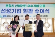 [파이낸셜데일리 박미화 기자] 포항시는 근로환경 개선과 안전한 일터 조성을 위해 추진한 ‘포항시 산업안전 우수기업 인증제’ 사업의 첫 주인공으로 ‘지구환경측정(주)’을 선정하고 3일 인증기업 현판 수여식을 가졌다. ‘산업안전 우수기업 인증제’는 지역 내 50인 미만 사업장을 대상으로 근로복지 및 안전관리 상태가 우수한 모범 기업을 발굴해 인증 및 인센티브를 지원하는 사업이다. 근로자를 위한 복리후생, 고용안정성 및 안전보건관리 분야 등 엄격한 서류심사와 현장실사를 거쳐 최종 선정된다. 제1호 인증 기업으로 선정된 지구환경측정(주)은 복지·고용·안전 등 전 분야에서 우수한 성적을 거뒀다. 특히 자유로운 육아휴직 분위기 조성, 가족 참여 체험 프로그램 운영 등 다양한 복지정책을 추진해 왔으며, 철저한 안전보건 관리 체계로 ‘산업재해율 제로’를 달성하는 등 지역을 대표하는 산업안전 우수기업으로 평가받았다. 인증 기업에는 인증 현판이 수여되며 효력은 향후 2년간 유지된다. 이와 함께 ▲모범근로자 산업연수 우선 선발 ▲고용노동부 정기근로감독 면제 추천 등 기업 운영에 실질적인 도움이 되는 혜택이 주어진다. 장상길 포항시장 권한대행은 “지구환경측정(주)의 제1호 인증은
