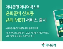 [파이낸셜데일리 송지수] 하나은행은 은퇴 준비 상태를 확인하고, 맞춤형 은퇴 설계를 받을 수 있는 '은퇴준비 신호등·은퇴 MBTI' 서비스를 출시했다고 20일 밝혔다. 은퇴설계·상속증여 솔루션 브랜드인 '하나더넥스트' 공식 홈페이지에서 출시한 이번 서비스는 개인의 삶과 성향을 반영한 맞춤형 은퇴 설계를 제공해 고객의 안정적인 노후 준비를 적극 지원하기 위해 기획됐다. 은퇴준비 신호등은 고객의 자산 현황과 은퇴 준비 수준을 '초록(좋음)', '노랑(보통)', '빨강(부족)' 등 3단계 색상으로 시각화해 보여준다. 10가지 간단한 질문을 통해 누구나 자신의 은퇴 준비 수준을 손쉽게 점검할 수 있도록 설계한 점이 특징이다. 은퇴 MBTI는 은퇴 여부, 현금흐름, 여유자금 보유 여부 등 주요 질문을 바탕으로 총 16가지 은퇴 유형을 구분하고 유형별로 적합한 맞춤형 은퇴 솔루션을 제안한다. 이를 통해 자신의 은퇴 성향을 이해하고 실행 가능한 은퇴 전략을 설계할 수 있다. 이밖에 시니어 고객을 위한 오프라인 전용 공간인 '하나더넥스트 라운지'에서도 은퇴 MBTI 진단 결과를 활용한 1대 1 맞춤형 전문 상담과 정기 세미나를 이용할 수 있다. 자세한 내용은 하나더넥스트