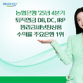 [파이낸셜데일리 송지수] NH농협은행은 퇴직연금 원리금비보장상품 운용 수익률이 5대 시중은행 중 1위를 달성했다고 22일 밝혔다. 금융감독원 통합연금포털에 공시된 지난해 4분기 농협은행 퇴직연금 원리금비보장상품 운용 수익률은 확정급여형(DB) 19.93%, 확정기여형(DC) 21.55%, 개인형(IRP) 22.04%로 나타났다. 퇴직연금 전 제도에 걸쳐 5대 은행 1위를 차지했다. 농협은행은 지난해 6월 은행권 최초 상장지수펀드(ETF) 운용전략을 포함한 로보어드바이저(RA) 일임서비스를 열었다. 인공지능(AI) 기반 개인형 IRP 자동 포트폴리오를 제공하고 있다.