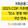 [파이낸셜데일리 송지수] KB금융그룹은 10일 탄소정보공개 프로젝트(CDP) 한국위원회에서 국내 산업별 '기후변화 대응 부문 우수 기업'에게 수여하는 '탄소경영 섹터 아너스'에 9년 연속 선정됐다고 밝혔다. 영국에 본부를 둔 CDP는 전 세계 주요 상장기업을 대상으로 기후변화 대응 등과 관련한 경영정보를 요청하는 글로벌 프로젝트이자 국제적인 비영리 기관이다. 지난해에는 2만3000여 개 기업이 CDP를 통해 환경정보를 공개했다. KB금융은 지난해 12월 '2025 CDP 기후변화 대응 부문' 평가에서도 최상위 등급인 '리더십 A'를 2년 연속 획득한 바 있다. 오는 2050년 탄소중립 이행을 위한 중장기 추진 전략인 'KB 넷 제로(Net Zero) S.T.A.R.'를 기반으로 녹색금융 투자 확대, 자산 포트폴리오 관리, 중소기업의 친환경 경영 지원, 온실가스 직접 감축 등 4가지 추진 방향에 따라 다양한 활동을 전개하고 있다. KB금융 관계자는 "앞으로도 금융을 통해 우리 경제가 친환경적으로 전환되고, 우리의 삶이 자연과 공존할 수 있도록 더욱 최선을 다하겠다"고 말했다.
