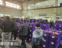 [파이낸셜데일리 박미화 기자] 포항시는 지난 16일 포항시 농산물 도매시장에서 사과 원물출하 첫 경매를 진행했다고 밝혔다. 기존 포항시 도매시장은 원물출하 없이 포장박스로만 경매가 진행됐다. 이 때문에 원물 상태로 출하를 원하는 농가들은 청송, 안동 공판장 등 관외로 출하해야 하는 불편함을 겪어왔다. 이를 해결하고자 포항시는 ‘대구경북사과원예농협 포항APC(기계지점)’에서 원물출하를 원하는 농가의 과수 물량을 공동 선별하고 도매시장까지 공동 운송해 농가의 인건비와 물류비를 절감할 수 있는 사업을 추진한다. 경매 대금은 도매시장 법인이 대경사과원예농협으로 공동 정산을 하면, 농가에 최종 정산되는 방식으로 운영된다. 시는 이번 원물출하 경매를 통해 지역 농가의 판로가 확대되고 안정적인 수익 확보가 가능해질 것으로 보고 있다. 또한, 물류 효율화로 농가 부담 경감은 물론 도매시장 활성화와 지역 경제 선순환 구조 형성에도 기여할 것으로 기대된다. 2026년도 목표는 2만 상자(400톤)이며, 이번 경매 물량은 9톤 정도이다. 시는 다가오는 설 명절을 기점으로 원물출하가 증가할 것으로 전망하고 있다. 이날 경매 현장에는 이현주 농업기술센터소장을 비롯해 대경사과원예농협
