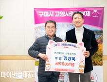 [파이낸셜데일리 박미화 기자] 구미시는 지난 20일 퀸스베이비 산후조리원 김상욱 대표가 2026년 고향사랑기부제 첫 고액 기부자로 500만 원을 기탁했다고 밝혔다. 새해 첫 기부이자 2026년 1호 고액 기부 사례다. 퀸스베이비 산후조리원은 2016년 10월 구미에 개원한 지역 최초의 프리미엄 산후조리원으로, 산모와 신생아를 위한 전문 돌봄 서비스를 제공해 왔다. 지역에서 축적한 신뢰를 바탕으로 이번 기부를 통해 고향사랑기부제의 취지에 공감하고 지역 환원의 의미를 더했다. 김상욱 대표는 “새해를 맞아 지역 사회 발전에 보탬이 되길 바라는 마음으로 기부에 동참했다”며 “앞으로도 고향사랑기부제에 지속적인 관심과 응원을 이어가겠다”고 말했다. 김장호 구미시장은 “새해 첫날부터 이어진 선한 기부가 고향사랑기부제 확산의 출발점이 될 것”이라며 “기탁금은 지역 발전과 시민 삶의 질을 높이는 데 의미 있게 사용하겠다”고 밝혔다.