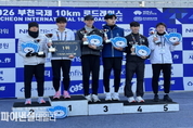 [파이낸셜데일리 박미화 기자] 지난 8일 경기도 부천에서 열린 ‘2026 부천 국제 10km 로드레이스대회’에서 영천시청 육상단(감독 황준석)의 박재우 선수가 국내부 1위를 차지했다고 밝혔다. 또한, 영천시청 육상단은 단체전 종합우승을, 황준석 감독은 지도자상을 받는 영예를 안았다. 이번 대회는 오전 8시 30분 부천시청을 출발해 부천시 일원을 돌아오는 10km 코스로 진행됐다. 박재우 선수는 29분 50초의 기록으로 개인 최고 기록을 경신하며 국내부 1위를 차지했다. 3명의 기록을 합산하는 단체전에서 영천시청 육상단은 박재우 선수 1위, 최재경 선수 6위, 배성준 선수 16위를 기록해 총 1시간 32분 29초로 괴산군청(1시간 32분 55초)을 제치고 단체전 우승을 차지했다. 황준석 감독은 지도자상을 수상했다. 황준석 영천시청 육상단 감독은 “지난 1월과 2월 동계 전지훈련을 제주도에서 진행했고, 이번 대회는 전지훈련의 평가와 기량 점검을 위해 출전했다”며 “기대 이상의 결과를 얻어 이번 시즌이 더욱 기대된다. 10월에 열리는 제107회 전국체육대회에서도 좋은 성과를 내고 싶다”고 말했다. 영천시청 육상단은 이번 대회의 성과를 발판으로 중·장거리 종목 전국