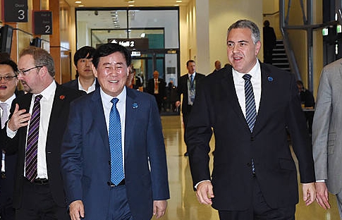 최경환 부총리 겸 기획재정부 장관은 20일 오후 7시(현지시각) 호주 케언즈에서 조 호키 호주 재무장관을 만나 "양국 경제협력 강화를 위해 한·호 FTA가 빠른 시일 내에 발효되기를 기대한다"고 밝혔다.
