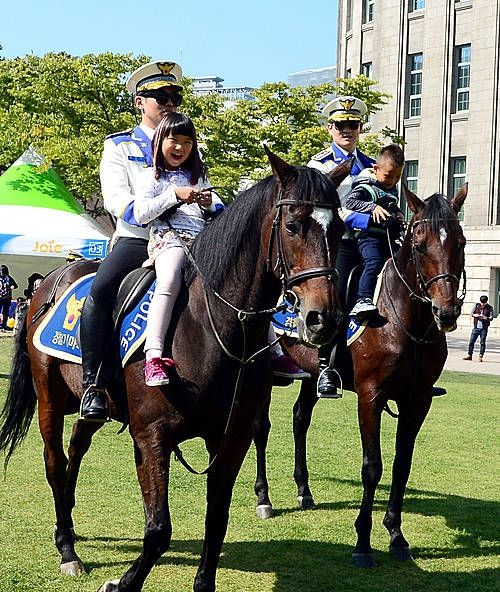 말끔히 정복을 차려입고 나타난 기마대원들은 아이들과 눈높이를 맞추며 승마체험의 기회를 제공했다.