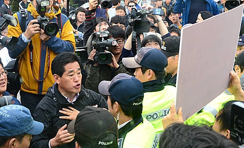 이에 보수단체 회원들은 버스에서 내려 '종북좌익 방치하면 대한민국 적화된다', '쏠 테면 쏴라. 북괴 멸망이면 죽음도 각오한다' 등의 피켓을 들고 '종북좌익 척결' 등의 구호를 외치며 주민들과 대치하는 상황이 벌어졌다.