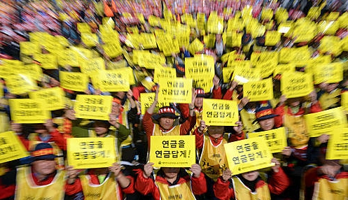 집회에 참석한 공무원들은 공무원연금 개혁안이 퇴직 후 삶에 악영향을 끼칠 것을 우려했다.