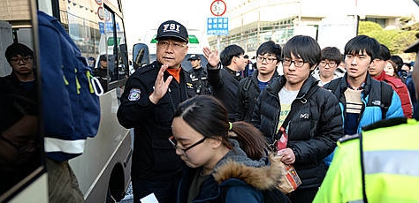 수험생이 탑승한 KTX 열차는 오후 2시44분 서울역에 도착했고, 수험생들은 역 앞에 대기하고 있던 경찰버스와 구급차 등에 탑승했다.