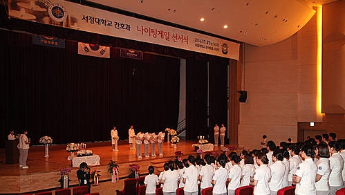 이날 행사는 서정대학교 양영희 이사장, 김홍용 총장 등이 참석한 가운데, 3학년생 57명 등 118명의 예비간호사들이 나이팅게일의 숭고한 정신을 계승하고 전문 간호인으로 책임과 의무를 다할 것을 서약했다.