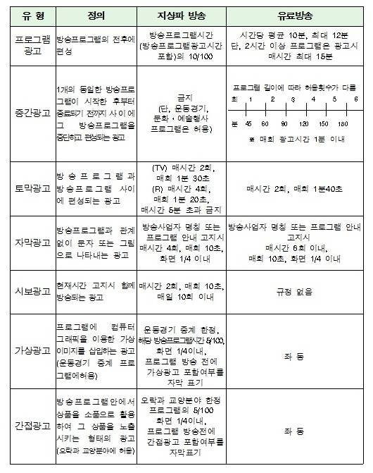 유료방송도 방송광고 종류별 규제를 폐지하되 추후 지상파방송과 유료방송간 매체 경쟁력 차이를 감안해 광고총량 규모를 확대하는 방안을 검토키로 했다.