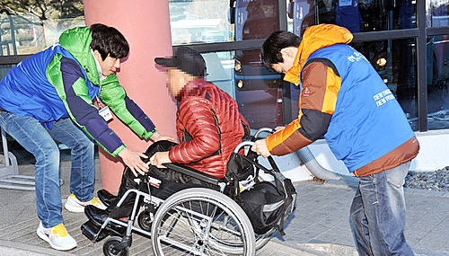 현대자동차가 사내하도급 근로자(비정규직)를 대상으로 선발한 기술직 신입사원들이 14일 경주장애인종합복지관 장애인 45명과 함께 경주 나들이 봉사활동에 나섰다.