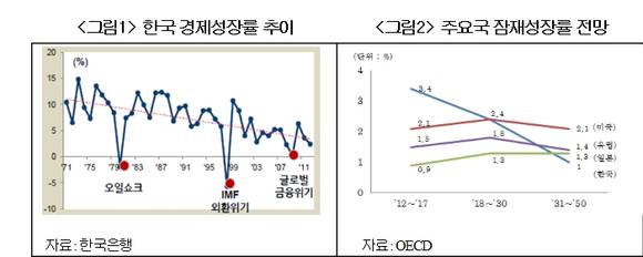 ◇'저성장함정'... 잠재성장률이 미국, 유럽, 일본보다 떨어질 듯
