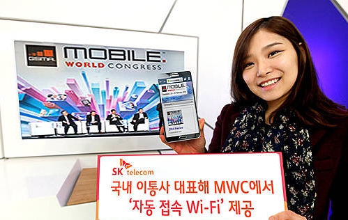 SK텔레콤은 오는 24일부터 27일까지 열리는 MWC 2014 전시장에서 AT&T, 시소코 등 글로벌 통신∙제조사와 협력해 별도 인증 작업 없이도 Wi-Fi 전원만 켜면 자동으로 접속되는 무료 Wi-Fi를 제공할 계획이다.