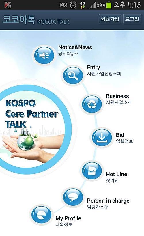 또한 신규 중기 지원사업 등에 대한 안내가 코코아톡 메신저 기능을 통해 핸드폰으로 직접 전달돼 협력사는 동반성장 프로그램에 대한 정보를 실시간으로 받고, 입찰공고 또한 실시간으로 확인할 수 있다.