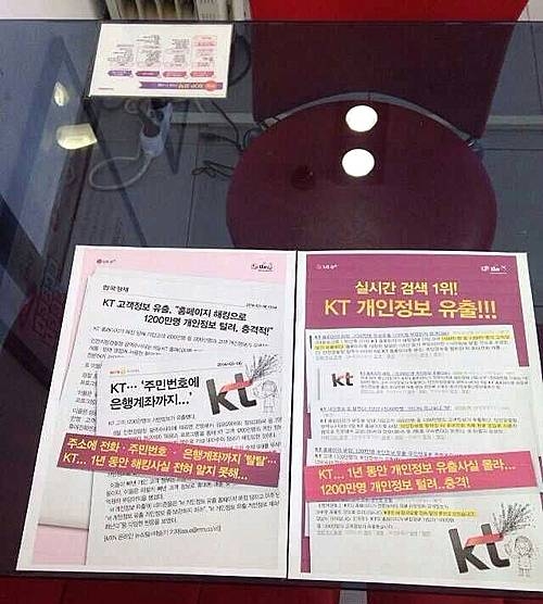 LG유플러스는 대리점과 판매점 등에 'KT 고객정보 유출, 홈페이지 해킹으로 1200만명 개인정보 털려 충격적', 'KT, 주민번호에 은행계좌까지' 등의 기사가 실린 A4용지 2장 크기의 팜플렛을 뿌렸다.