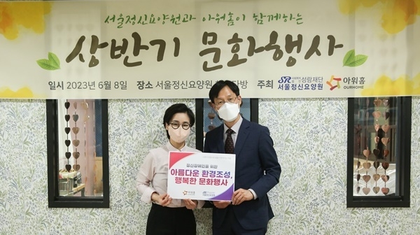 8일 아워홈과 서울정신요양원은 성공적인 리모델링 공사 마무리를 기념해 식당 리모델링 후원 전달식을 열었다. 한웅철 아워홈 TFS사업부 담당과 백윤미 서울정신요양원장 등 양 측 주요 관계자와 생활인 180명이 참석했다.