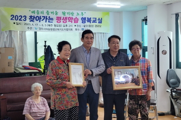 경주시의 후원을 받고 경주시 마을평생교육지도자협의회가 주관한 이번 행복교실은 지난 4월 17일 황오동 중앙경로당에서 개강했다.